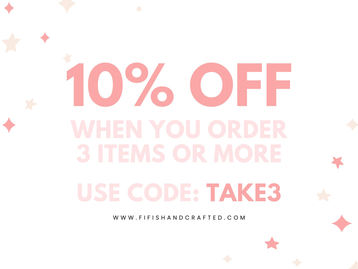 - Add 3 items or more to your basket, and when you checkout enter the offer code “TAKE3” and you'll get 10% off your order